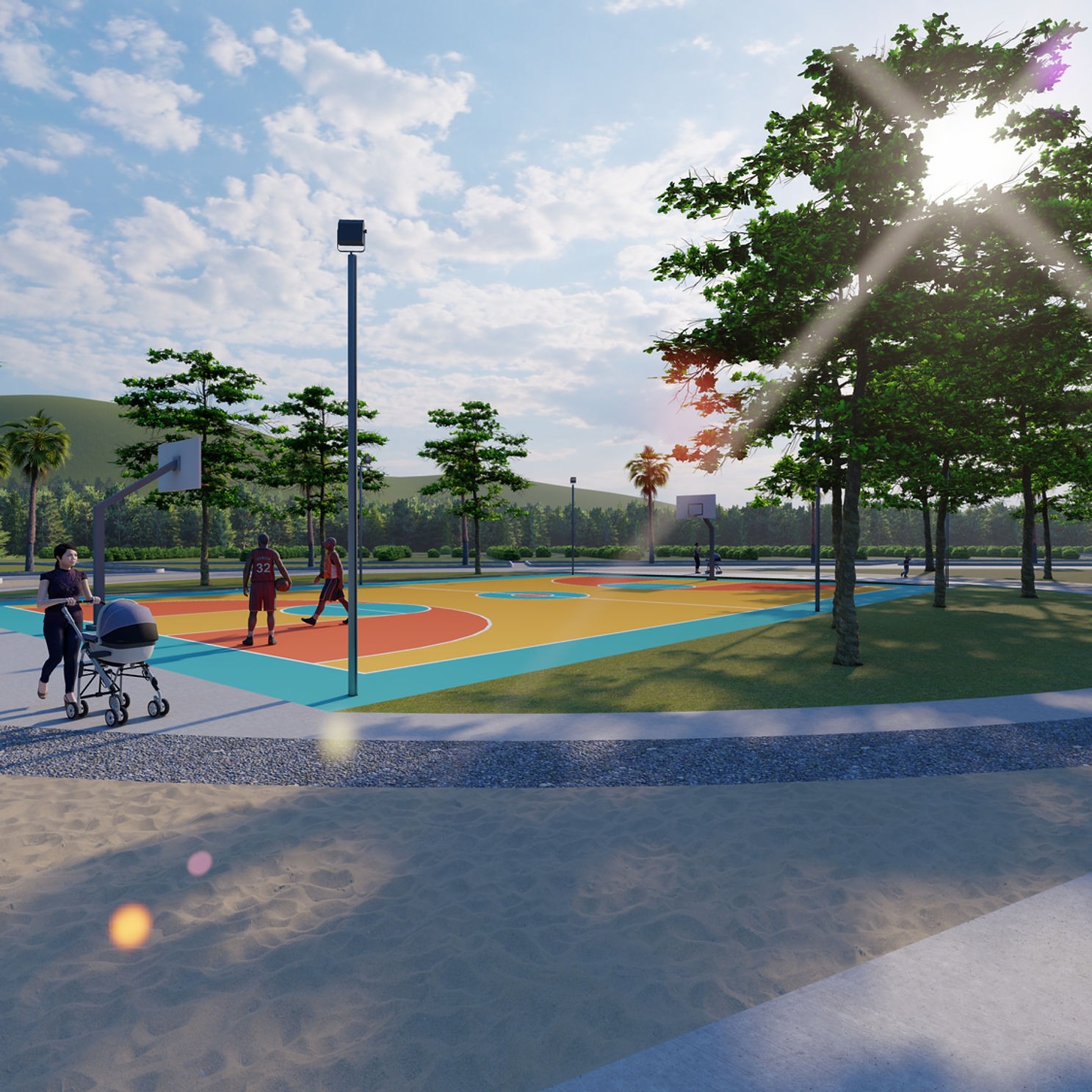 Áreas recreativas, gimnasio al aire libre, pista para caminar y trotar, área infantil, cancha multiuso y parque con zonas verdes.